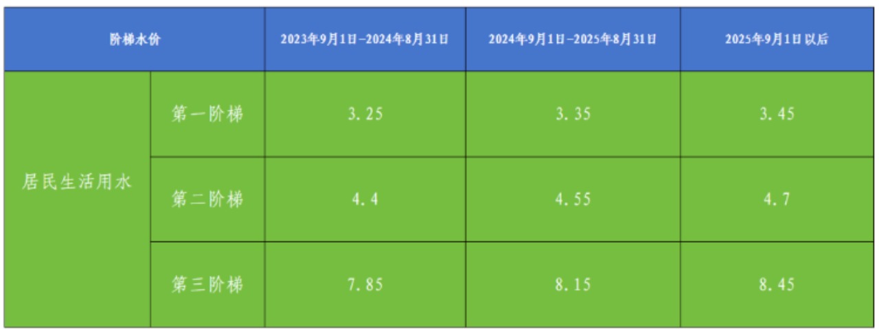 注:以上價格包含代收的污水處理費0.95元/立方米。